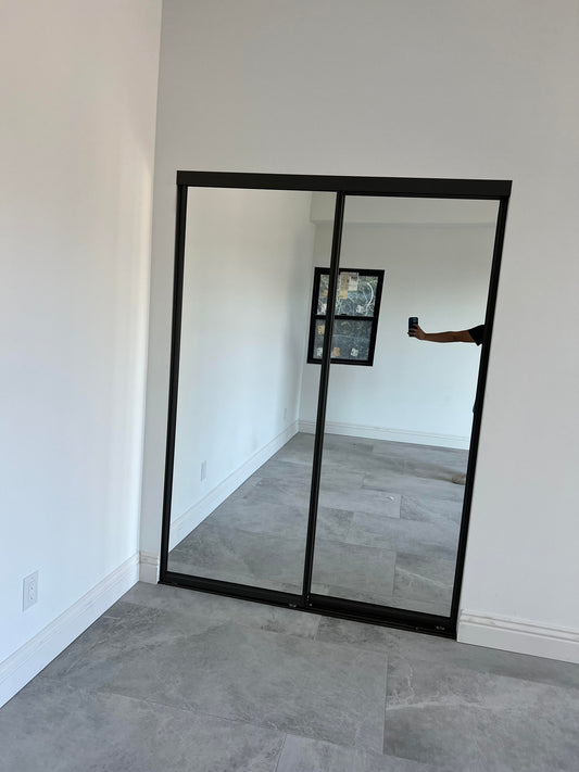Grey Satin Anodize Sliding Mirror Closet Door Set